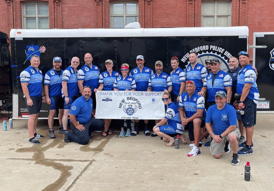 Members of the New Bedford Police Department Unity Tour Riders, including Swansea Police Officer Macaila Saunders, center, wearing pink shoes, participated in the Police Unity Tour, cycling from New Jersey to Washington, D.C., this week. (Photo Courtesy New Bedford Police Department Unity Tour Riders)