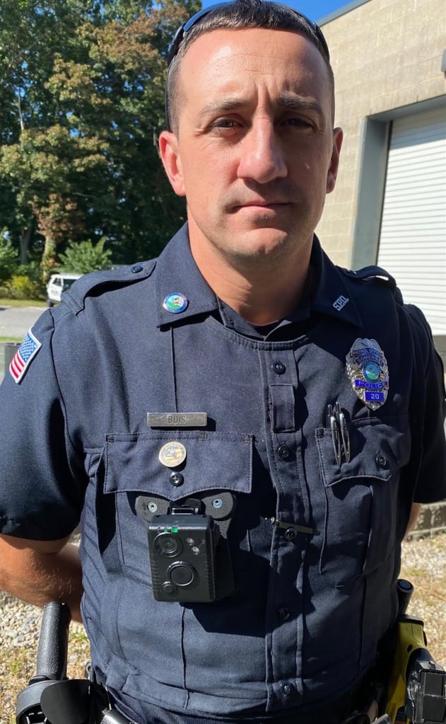 Somerset Police Officer Joseph Bois wearing his newly issued body-worn camera. (Photo courtesy Somerset Police Department)