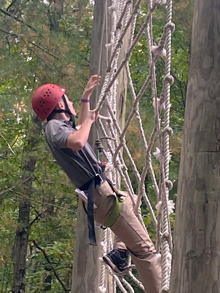 A Methuen Police Explorer climbs a rope ladder at the Spirit of Adventure Law Enforcement Day. (Photo Courtesy Methuen Police Department)