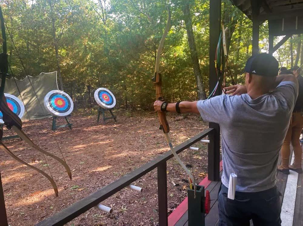 A Methuen Police Department Police Explorer takes part in an archery exercise at the Spirit of Adventure Law Enforcement Day. (Photo Courtesy Methuen Police Department)