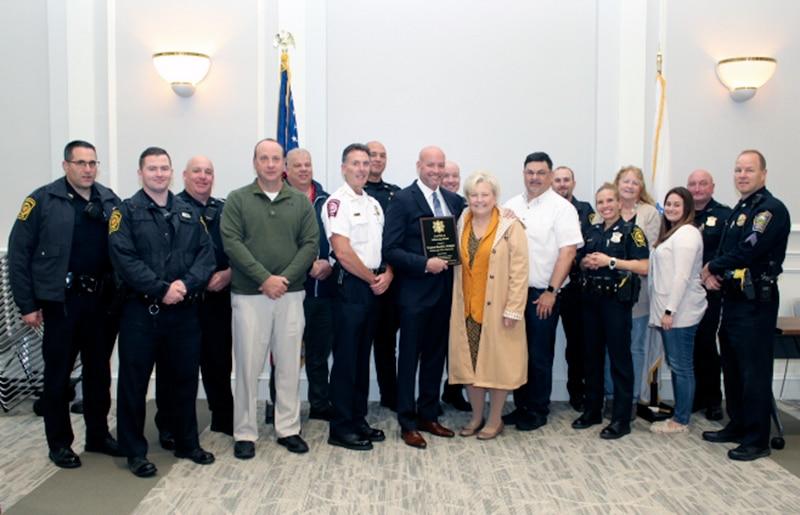 On Oct. 27, members of the IAPOA Executive Board visited the Westborough Police Department to present the award to retired Sgt. Jonathan Kalagher.
