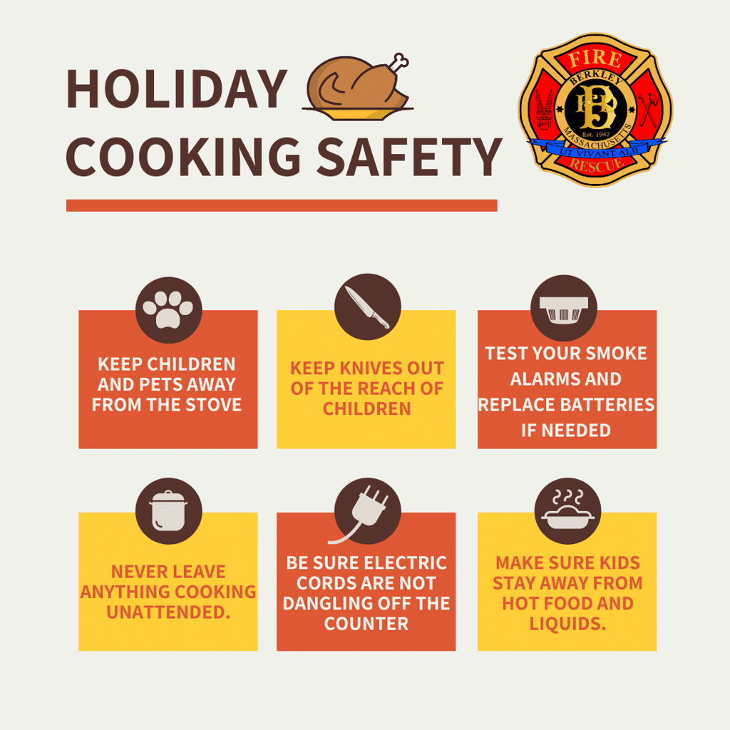 If you have any questions about cooking safety, please contact Berkley Fire Rescue at 508-822-6354.