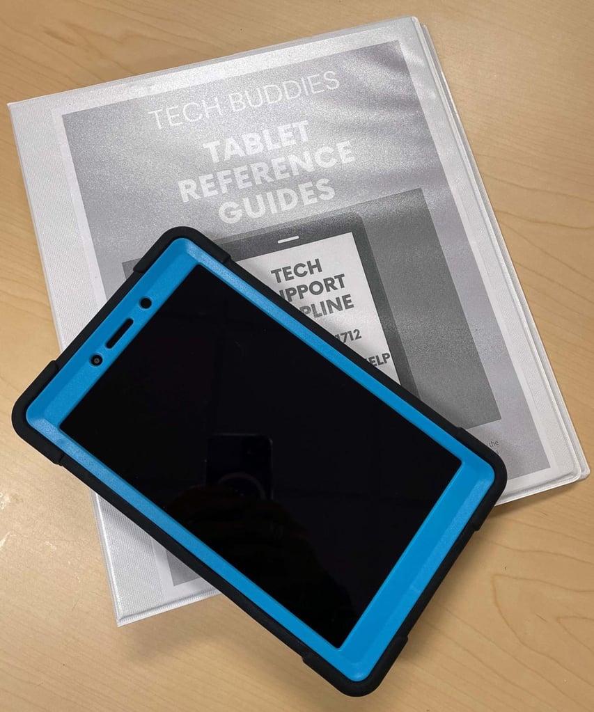 During those at-home deliveries, credentialed volunteers provide basic education and offer to return as needed so that participants gain the confidence they need to use their tablets. The program also provides volunteer-based remote tech support for all participants, as well as a binder with large-print, easy to follow instructions for everything from charging the tablet to making a Zoom call.