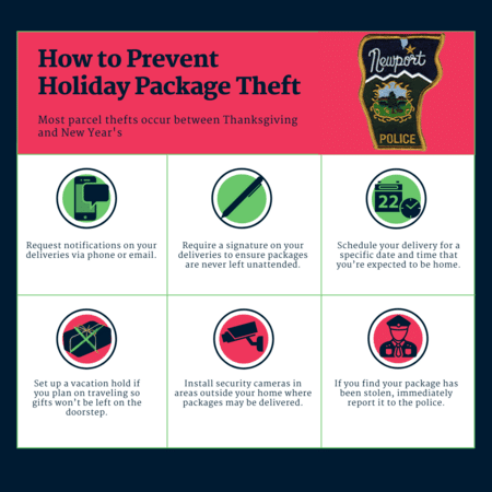 NEWPORT — With the holiday season fast approaching and more people shopping for gifts, Chief Travis R. Bingham and the Newport Police Department would like to provide tips to prevent theft for residents expecting package deliveries in the coming weeks.