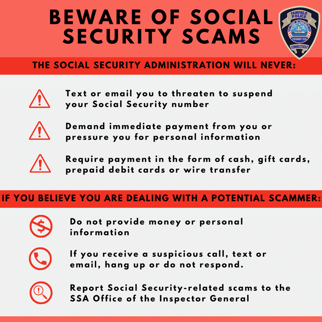 Fairfield Police share the following tips, courtesy the Social Security Administration, to help residents recognize a scam call: