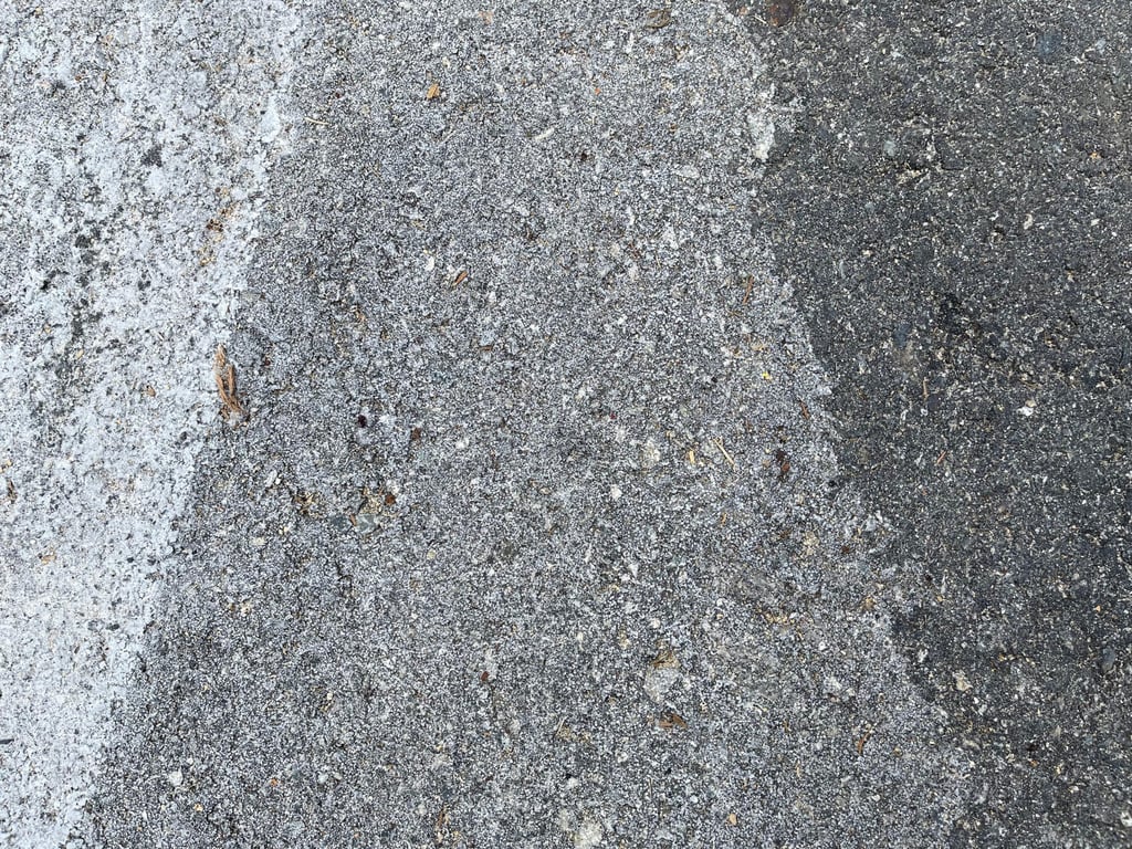 Varying levels of salt brine are bonded to asphalt outside the Andover DPW garage. When the liquid salt brine is sprayed on local roads before storms, the water quickly evaporates, leaving a thin layer of salt bonded to the asphalt. (Photo Courtesy Andover Department of Public Works)
