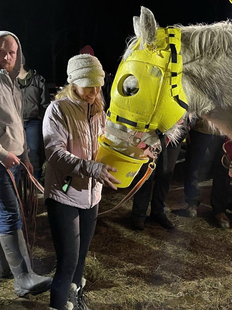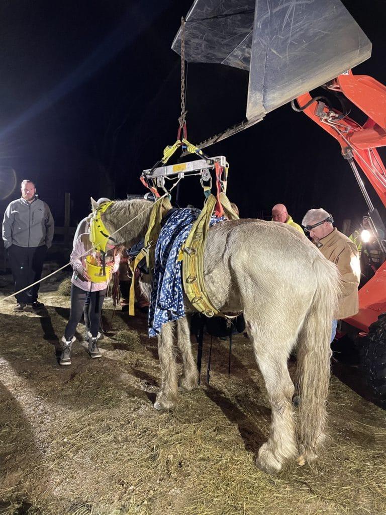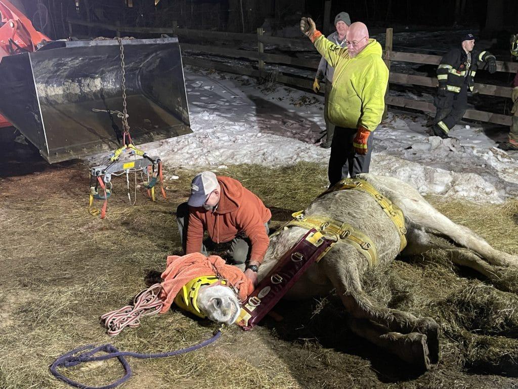 Upon arrival, first responders discovered that the horse, Pearl, had slipped on ice outside her barn and was unable to get up.