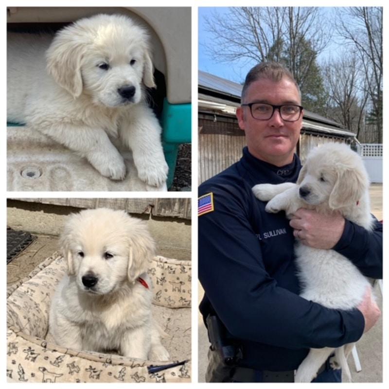 The puppy is receiving training from Golden Opportunities for Independence in Walpole. He and Officer Sullivan will attend additional training during the next several months to get to know one another a little better and learn more about working together.