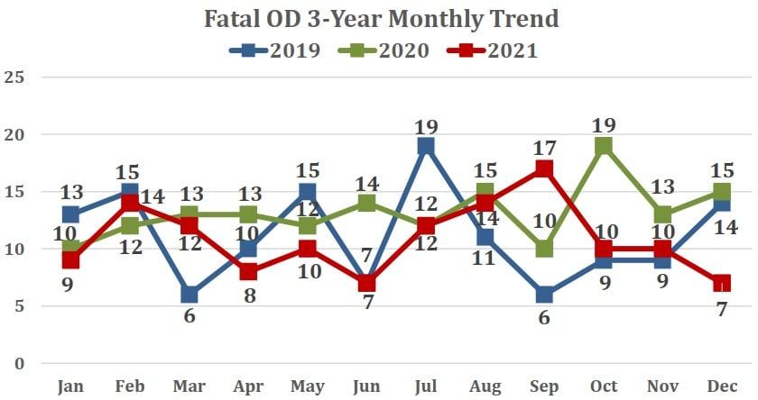 Plymouth County Outreach has continued to see pressed pills and other substances being laced with fentanyl, often unknown to the consumers. Of the 130 fatal overdoses in 2021, 64% (83) of those involved individuals had no prior records in our Critical Incident Management System. These are individuals whom with we never had the opportunity to engage prior to their fatal incidents. Similar corroborating but lagging data is published by the federal Center for Disease Control (CDC), a summary of which is the following: