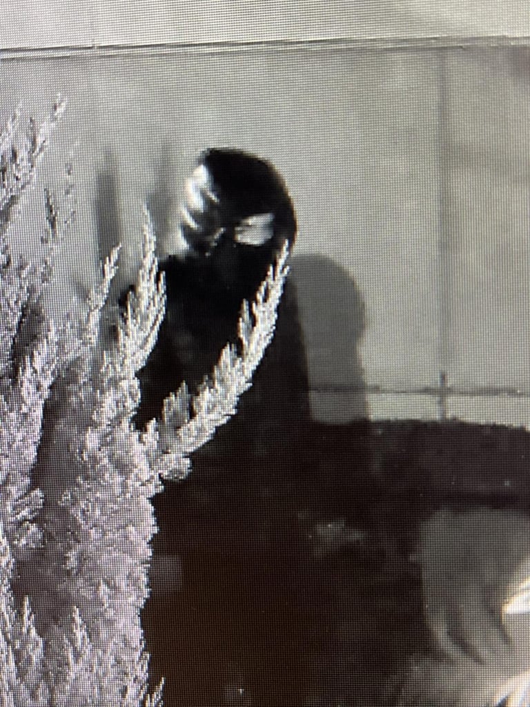 Community members should note that the time depicted on the screen is off by one hour as the video was taken at 9:40 p.m on March 26 and that the video was taken with a night vision camera so the colors of the clothing may not be as they appear.