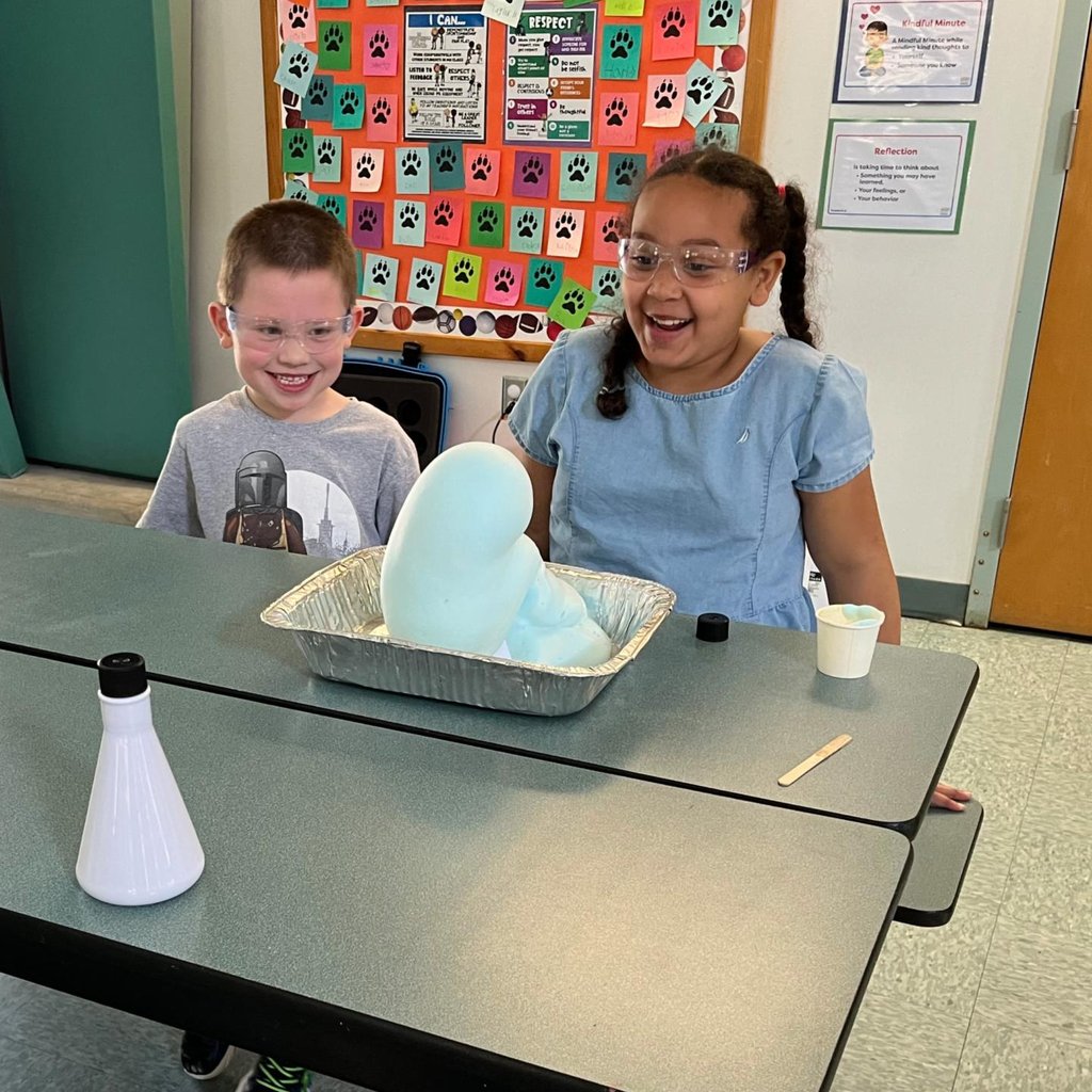 Students in second grade, along with their assigned preschool buddies, made elephant’s toothpaste – a foamy substance that forms when water, hydrogen peroxide, yeast, and dish soap are mixed together.