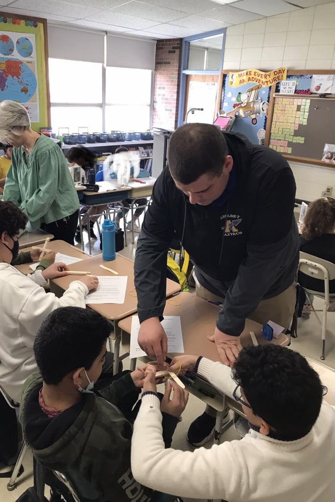 Assabet Valley students and paraprofessionals recently visited Richer fourth-grade students, assisting them with creating catapults using popsicle sticks. The goal of the exercise is to impart an understanding of the transfer of energy, torque, and leverage, meeting a standard in the Massachusetts curriculum frameworks.
