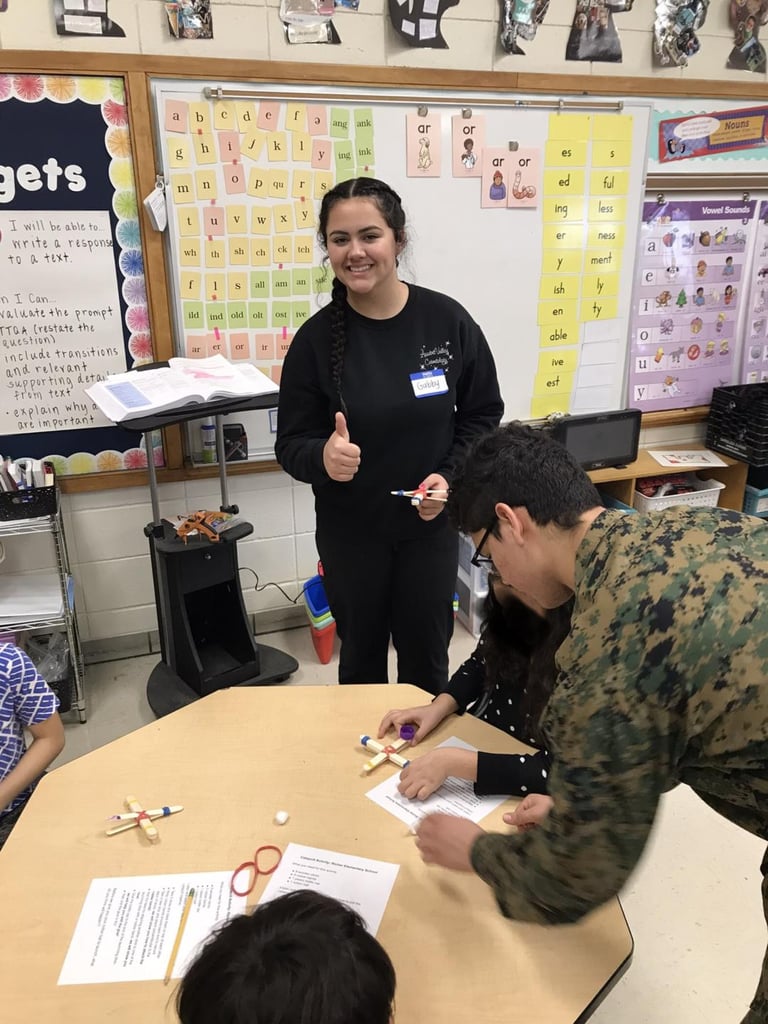Juniors and seniors from each high school’s honor societies teach the same predetermined STEM lesson each month, imparting the value of science through fun experiments.