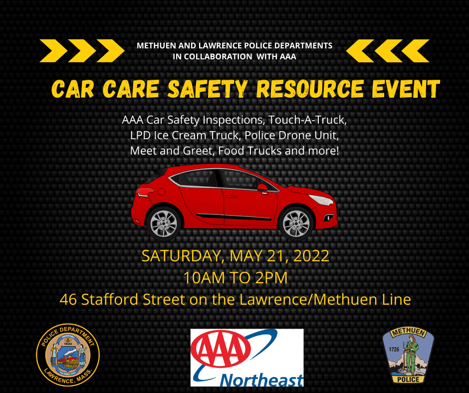 METHUEN — Chief Scott J. McNamara reports that the Methuen Police Department, in collaboration with the Lawrence Police Department and AAA Northeast, will offer a free Car Care Safety Resource Event.