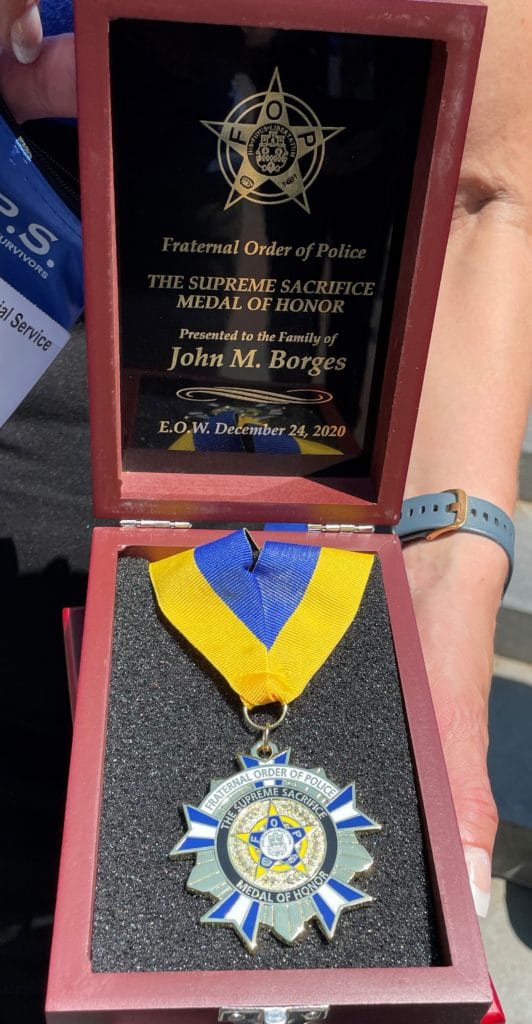During the 41st Annual National Peace Officers Memorial Service at the U.S. Capitol, Luisa Borges was presented with a Fraternal Order of Police Supreme Sacrifice Medal of Honor in recognition of Patrolman Borges’ service and sacrifice. At the service, President Joe Biden provided remarks.