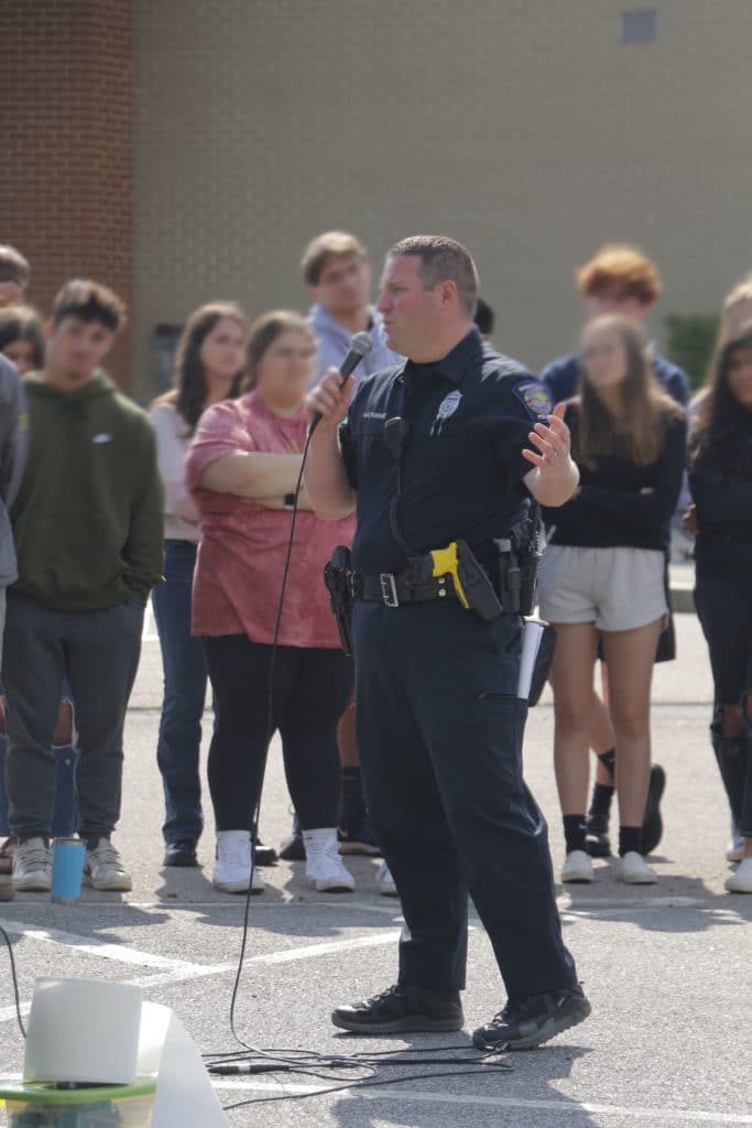 After the simulation, SRO Hathway shared some facts and statistics surrounding driving under the influence with students, including the specific laws about impaired driving and underage drinking and the costs associated with OUI crashes.