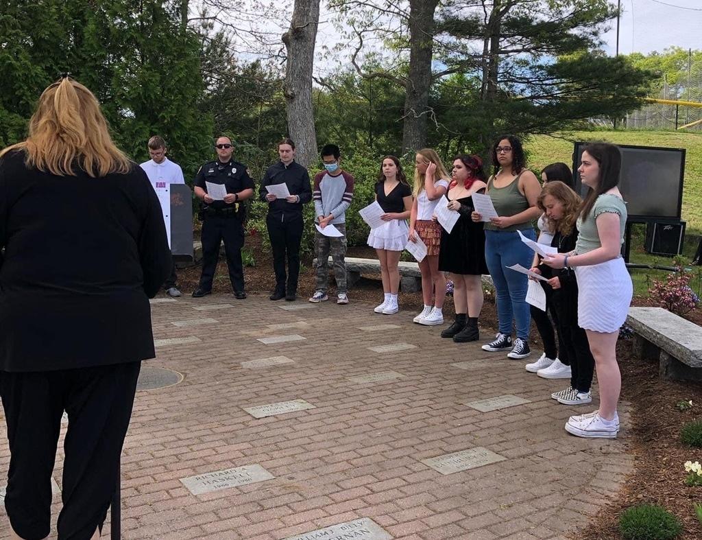Madge read the names of each student memorialized in the garden, while flowers were placed by students Addison Dion, Courtney Greene, Caleigh Wrighter, Audrey Caron, Ava Fenton and Kiley Reed.