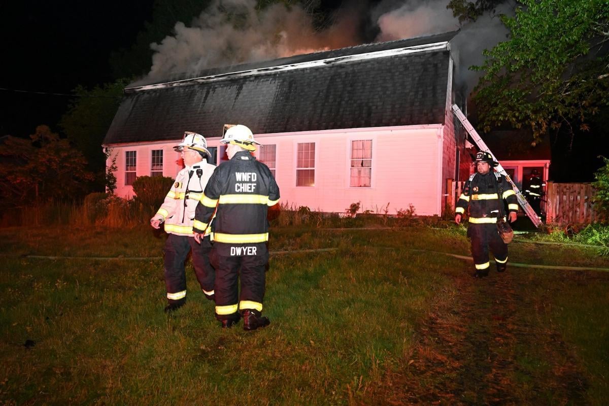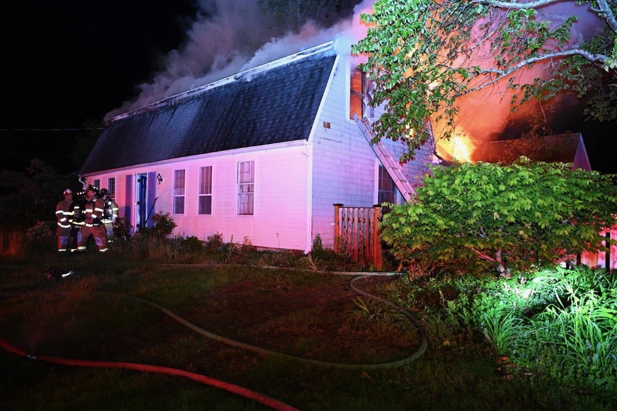 Firefighters battled a house fire on May 27, 2022, in West Newbury. (Photo courtesy Newburyport Firefighter Michael Kent)