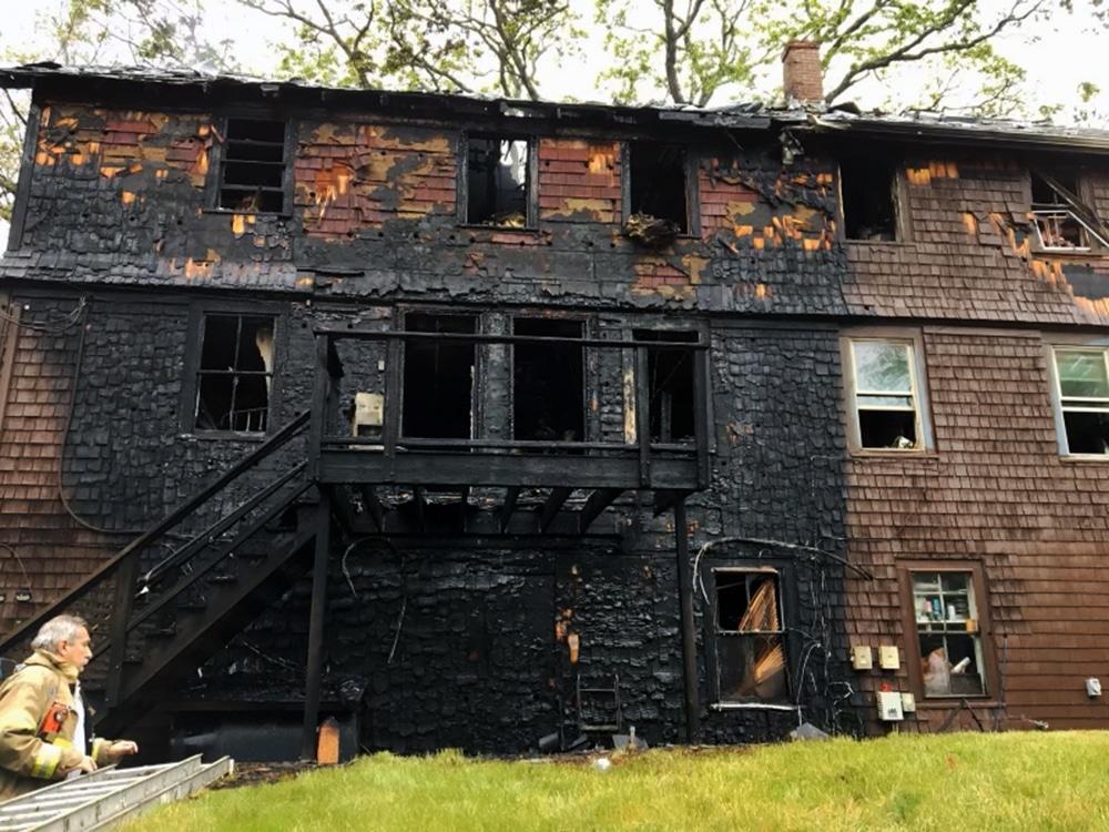 The three-family home sustained extensive structural damage. A neighboring home sustained siding damage, though firefighters were able to prevent the fire from extending to that home.