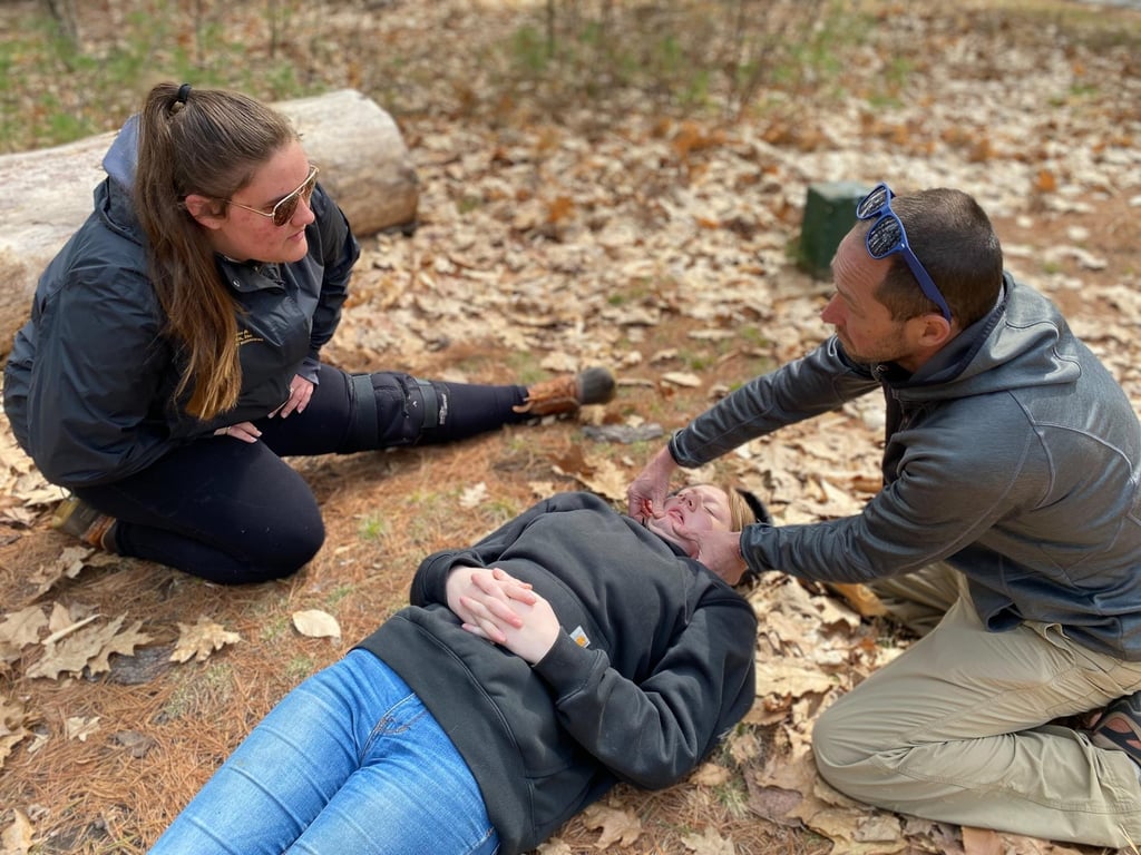 Hannah and Tom Welsh, co-founders of EMTechTutoring and Creative Classroom Solutions, led a two-day, 16-hour introductory course in Wilderness First Aid in which 16 students participated. EMTechTutoring, based in Dover, uses experiential learning to provide EMS programs, wilderness courses, and creative classroom ideas.