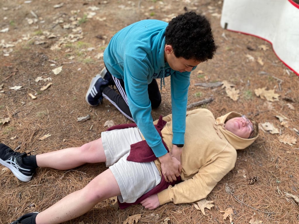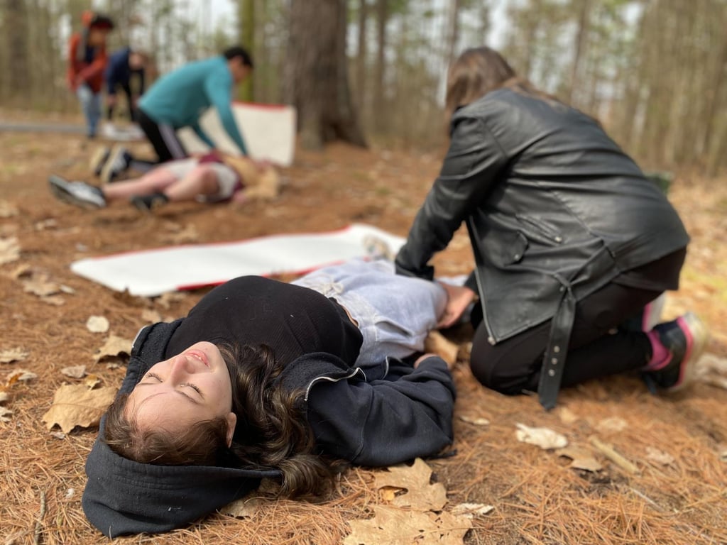 “Teaching high school students EMT work is difficult because it’s adult-level material, so we try to make it exciting and motivate students. Students really enjoy this because it’s hands-on, and many of them are Scouts or like the outdoors,” said Hannah Welsh. “These wilderness skills include engineering and building splints, evaluating a scene and how close additional care is, and other critical thinking skills, collaboration, and leadership.”