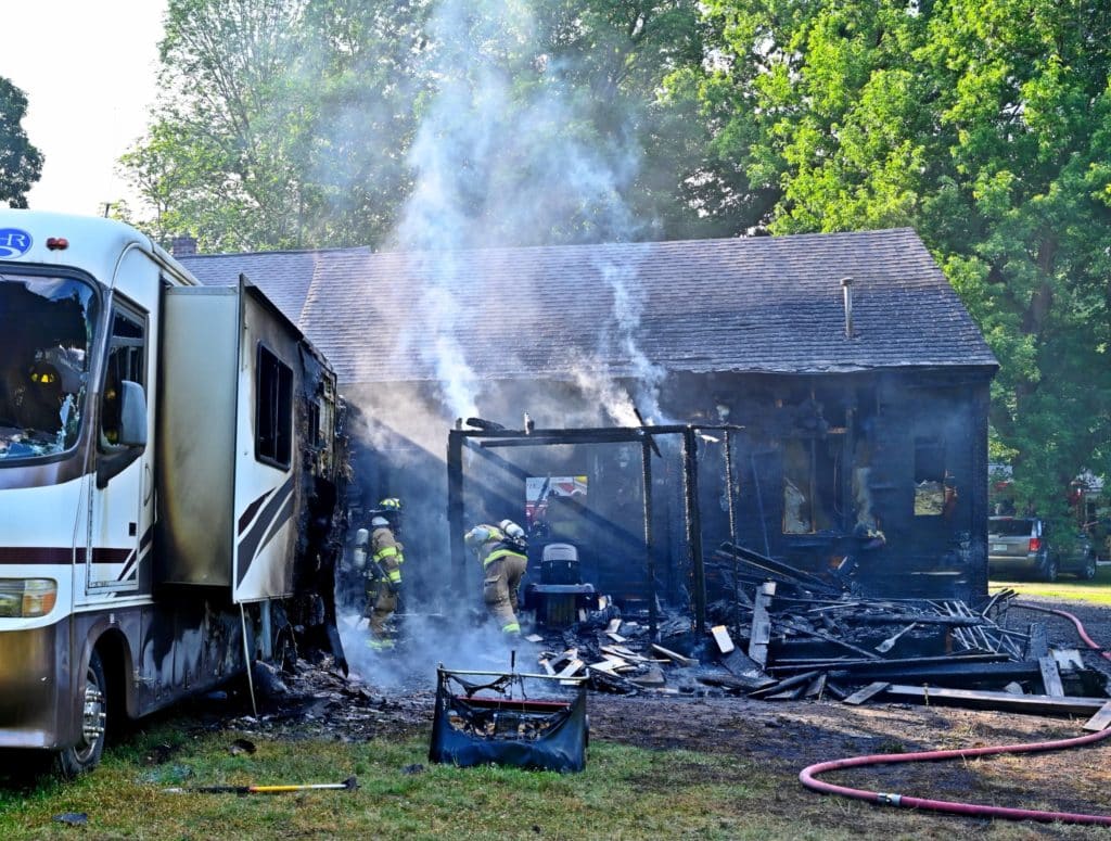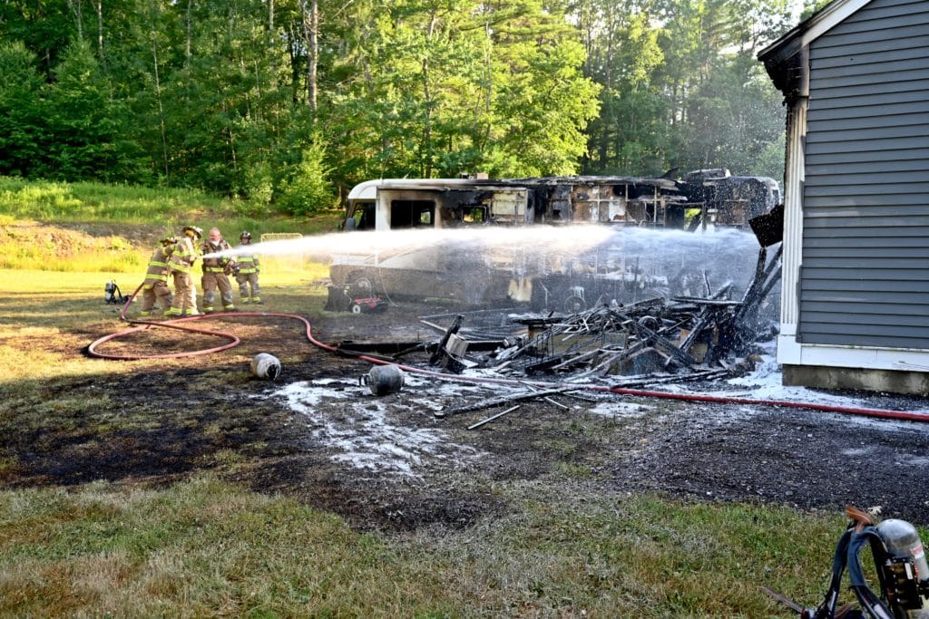 Upon arrival, crews found fire in a shed attached to the home. The fire had also ignited multiple propane tanks on the property and had extended to a 35-foot motor home next to the shed, as well as had extended to the house.