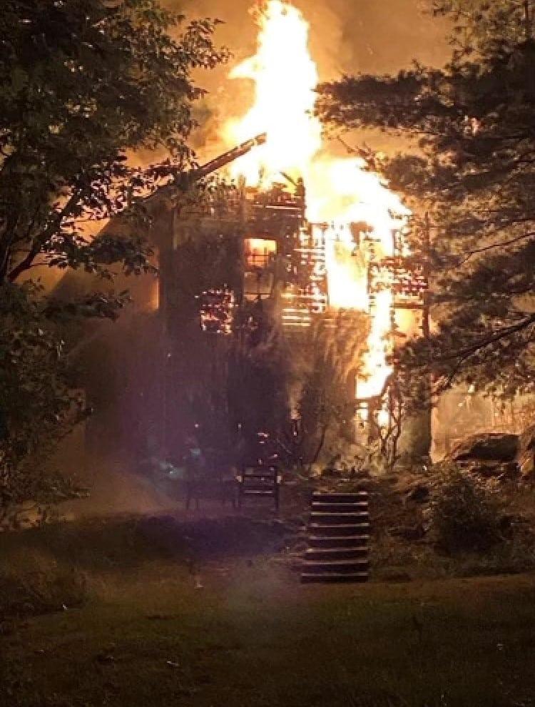 The fire was knocked down by approximately 10:10 p.m. One firefighter was transported to Addison Gilbert Hospital for a shoulder injury. The structure is a total loss.