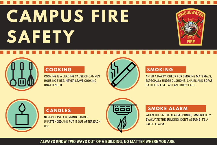 The Bridgewater Fire Department also reminds students that alcohol or drugs and fires don’t mix. These substances increase your chance of falling asleep while cooking or while a candle is lit and limit your ability to respond to an alarm.