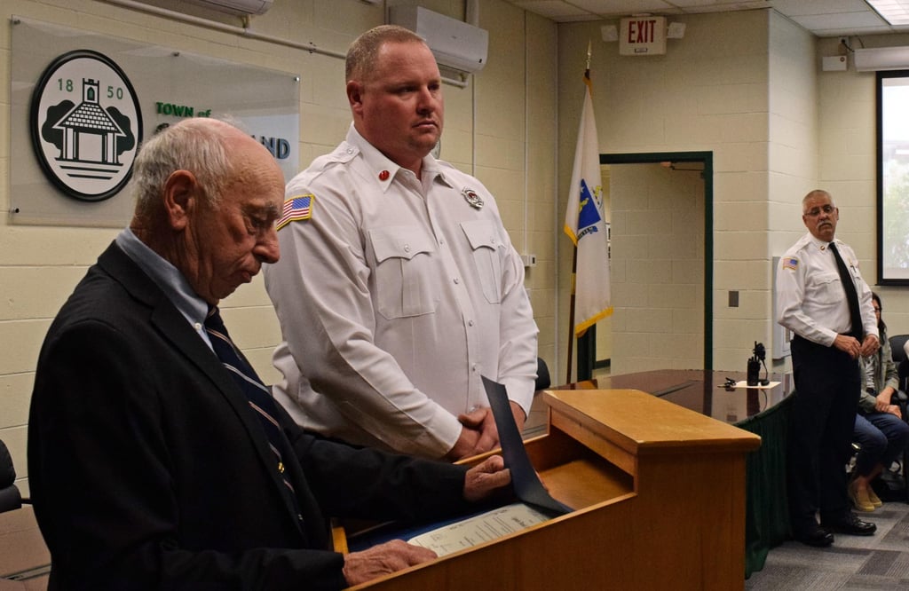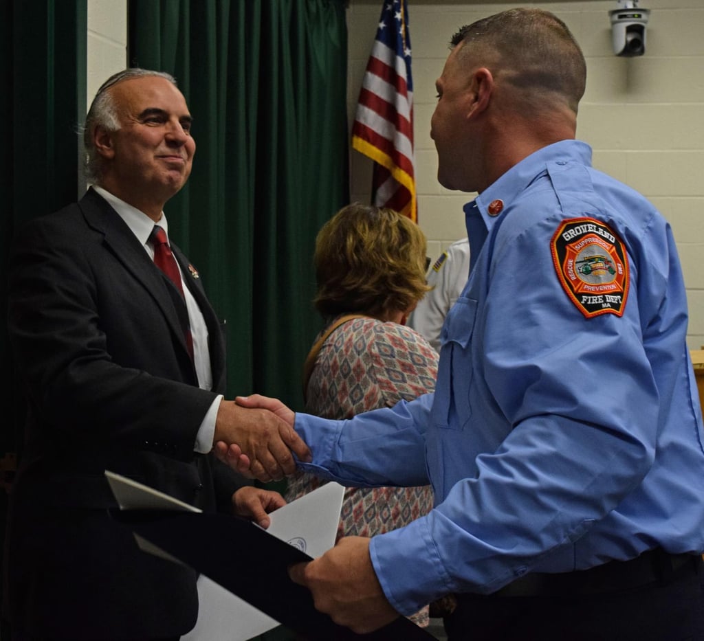 Sen. Bruce Tarr and Rep. Lenny Mirra both spoke and presented first responders with citations from the House and Senate in addition to their awards from their departments.