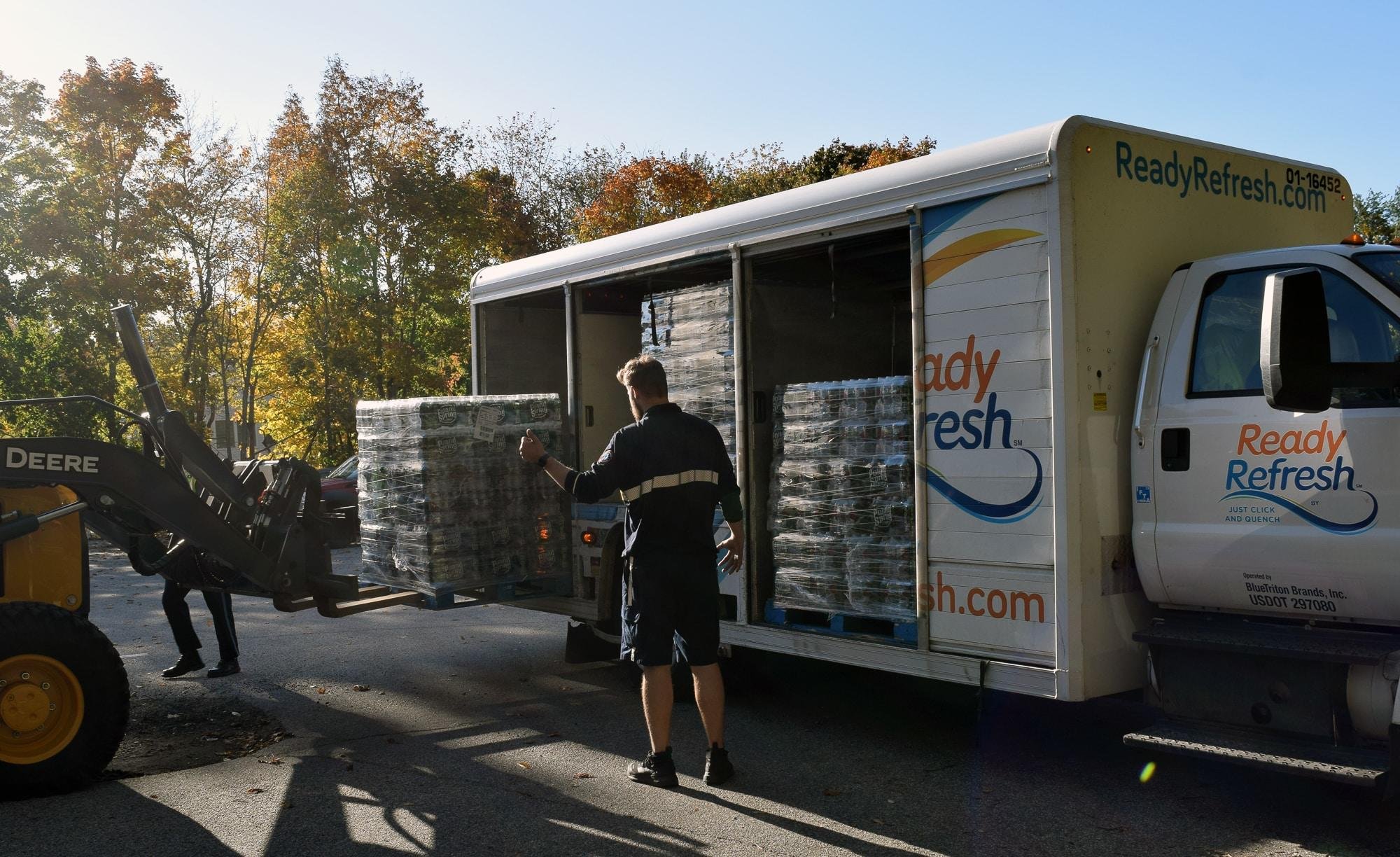 On Wednesday, firefighters received six pallets of Poland Spring water from a local distributor, Ready Refresh, which is ensuring the Town is supplied with bottled water.