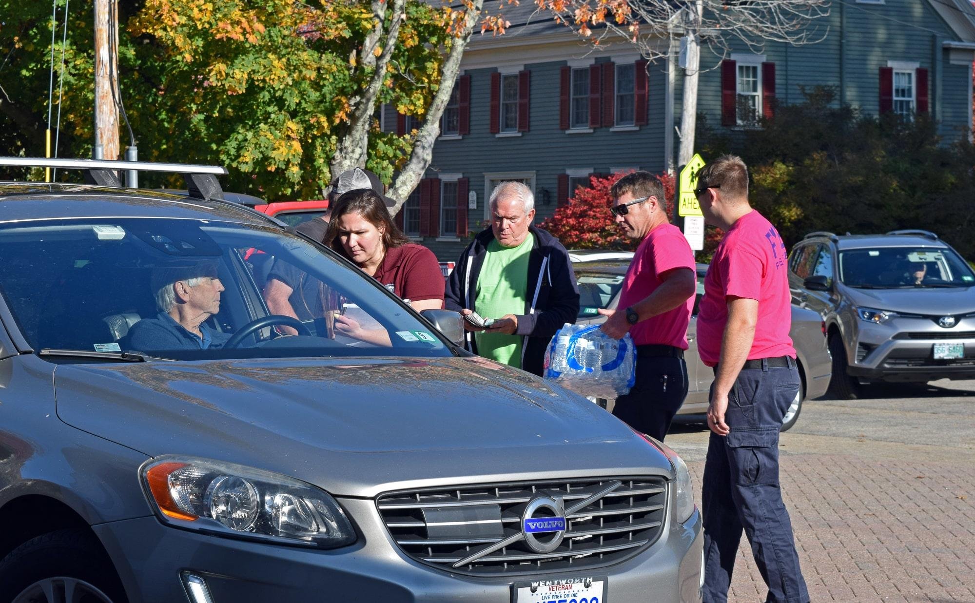 RYE — Town Administrator Matthew Scruton and Superintendent Arik Jones report that Firefighters, Police and Department of Public Works employees teamed up to provide free cases of bottled water to Rye residents affected by a boil water order.