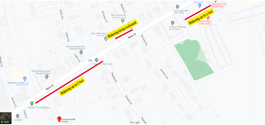 After conducting these tests and to ensure that public safety vehicles are provided as much space as possible to move through the area, the Town and MassDOT are working to widen portions of the road to the fullest extent without infringing on private property.