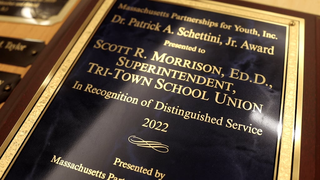 WAKEFIELD — The Massachusetts Partnerships for Youth (MPY) is pleased to announce that Dr. Scott Morrison, Superintendent of the Tri-Town School Union, has received the 13th annual Dr. Patrick A. Schettini Jr. Memorial Award.