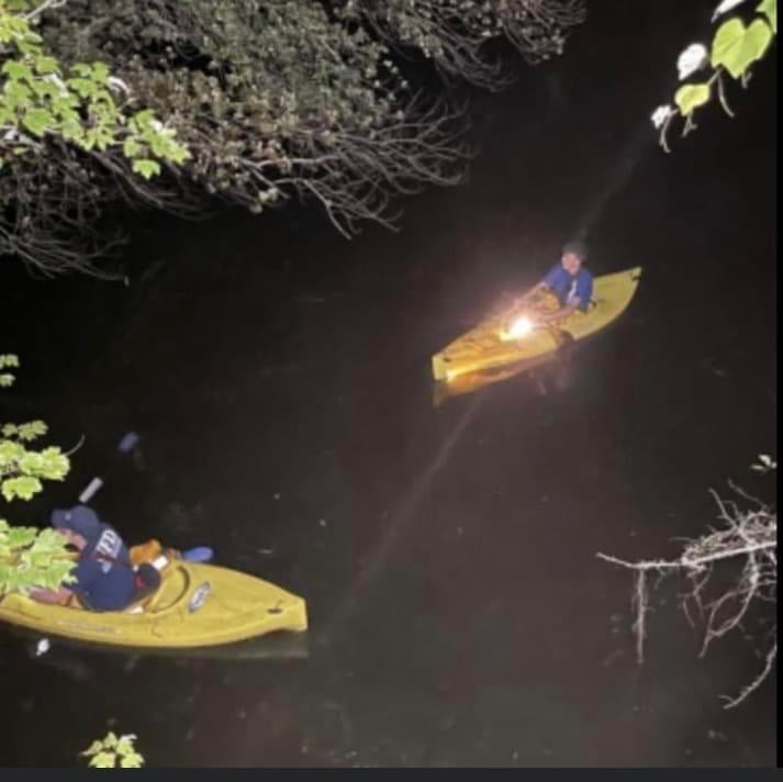 Using kayaks, Captain Tyler Parks and Firefighter Luke Meyers located the girl in her kayak on the river and were able safely escort her back to shore where she received medical care.