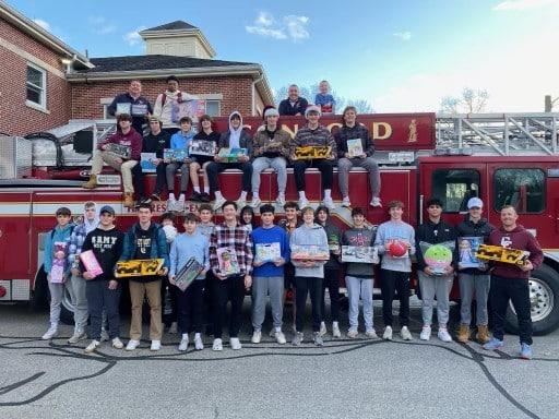 In what has become an annual tradition, members of the Concord-Carlisle High School football team, as well as students from the Willard School, have come together to donate toys to the Concord Firefighters Relief Association, which is in turn donating them to families in need in Concord and beyond.