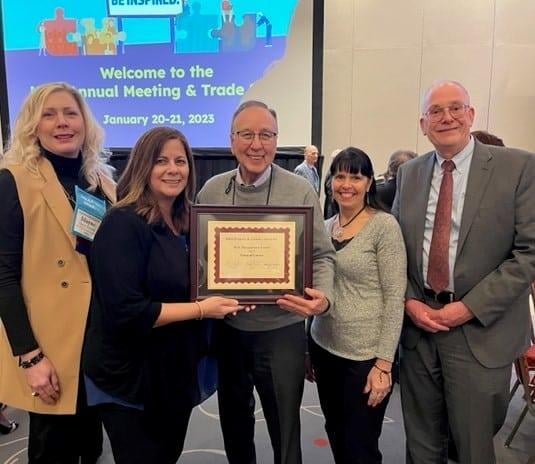 On Saturday, Jan. 21, Town Administrator Fennessy, Assistant Town Administrator Weston, Operations and Maintenance Office Coordinator Kari Boss and Select Board Chair Mark Townsend were presented with the Massachusetts Interlocal Insurance Association’s (MIIA) Risk Management Award at the MMA Annual Luncheon. The award was presented to the Town of Carver by MMA Executive Director Geoff Beckwith. Also in attendance was MIIA Senior Risk Management Advisor Jilayne Mitchell.
