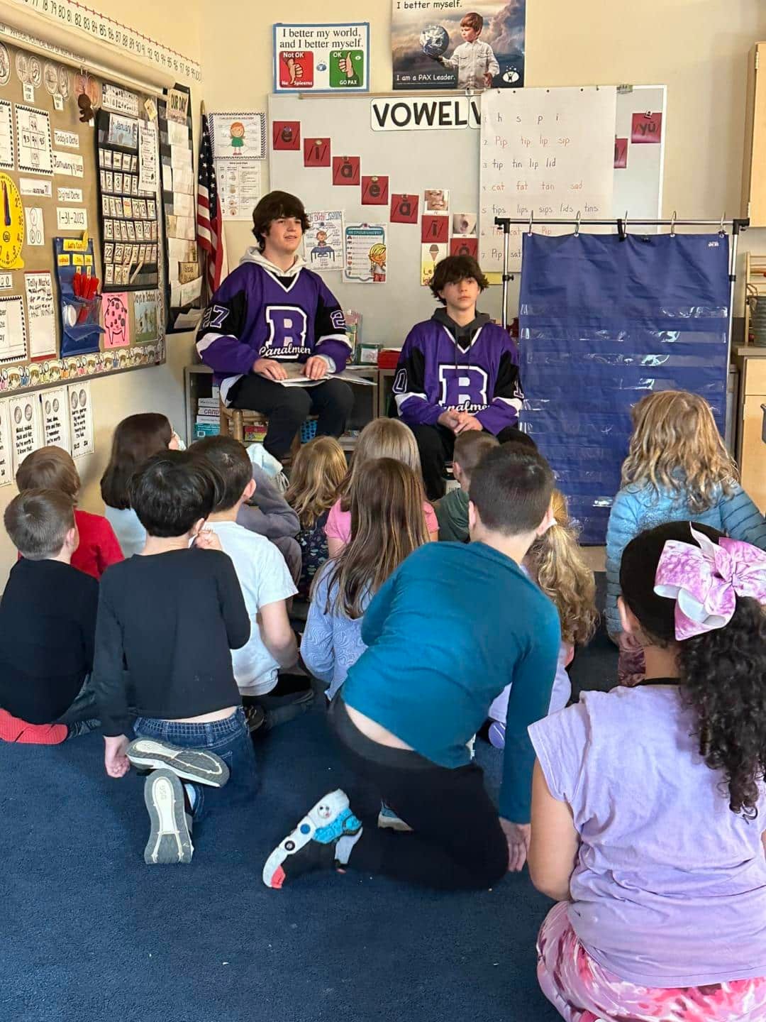 Members of the team read books that were hockey themed. Titles such as “The Magic Hockey Stick,” “The Boy Who Wore Number 4,” “Goodnight Hockey,” “Hockey A-Z,” “Z is for Zamboni” and more. They also spent time answering questions the younger students had with an emphasis on sports and academics.