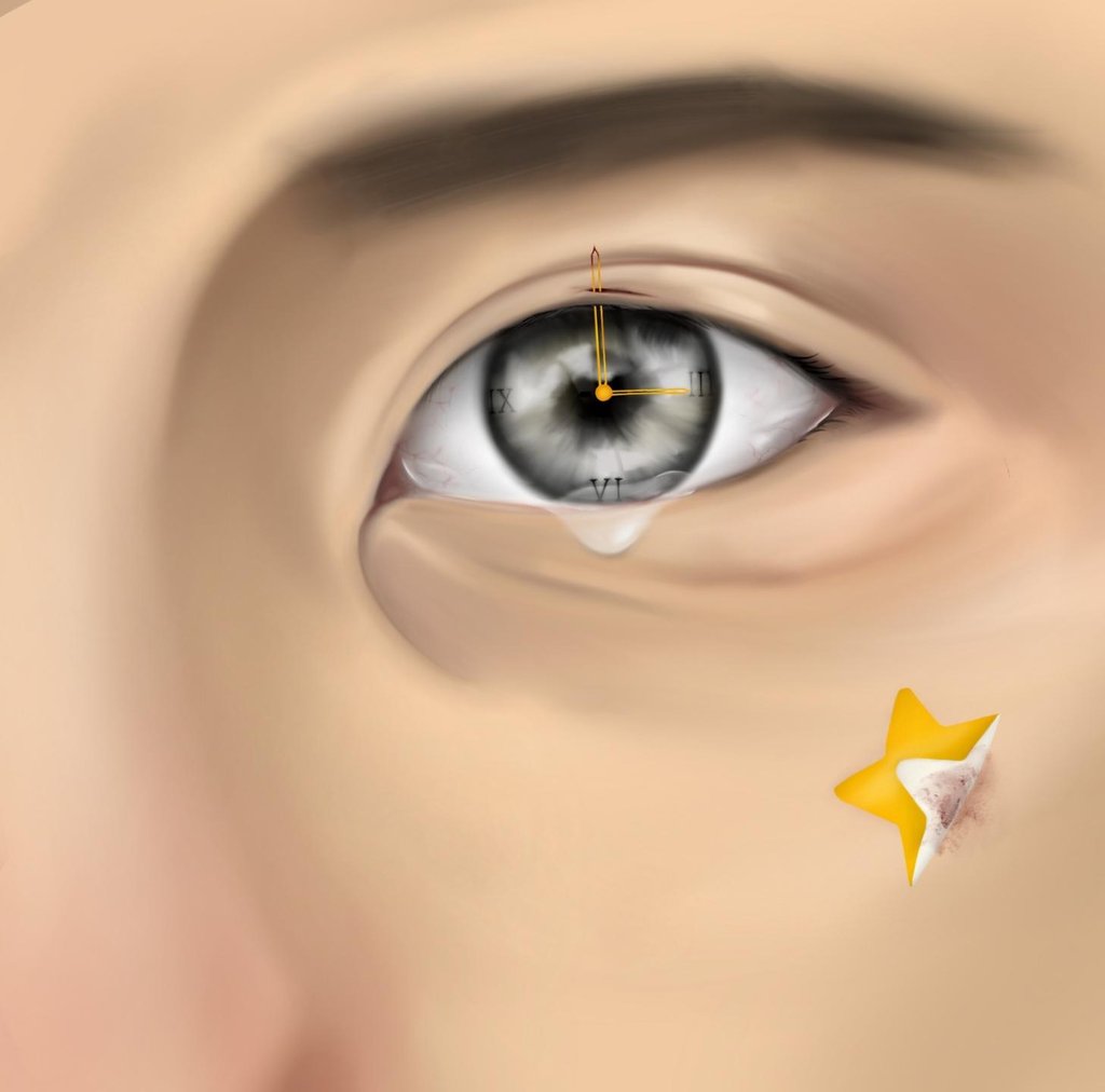 “For this piece, I wanted to represent how it feels to be overwhelmed with life, more specifically as a student in high school,” Schnock said. “It looks like a simple eye drawing at first, but the details like the clock and the sticker represent the stress of striving to be perfect and meeting deadlines.”