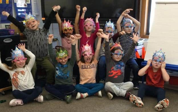 Students from Ed Fenn Elementary School celebrated 100 days of school on Monday. (Photo courtesy SAU 20)