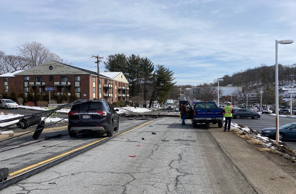 On Wednesday, March 1, at 9:34 a.m., the Stoneham Police and Fire Departments began receiving over two dozen 911 calls reporting that multiple utility poles had fallen on Montvale Avenue between Lindenwood Road and Maple Street, and that the occupant of a vehicle in the area was trapped by downed wires.