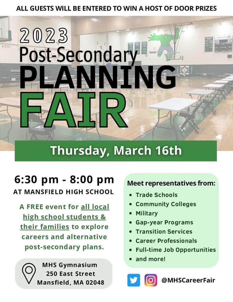 “The Post-Secondary Planning Fair is a great way for our students to learn more about the opportunities that each different post-high school pathway has to offer,” said Superintendent Murphy. “I encourage all Mansfield High School students to attend this event and explore the variety of post-secondary options available to them.”