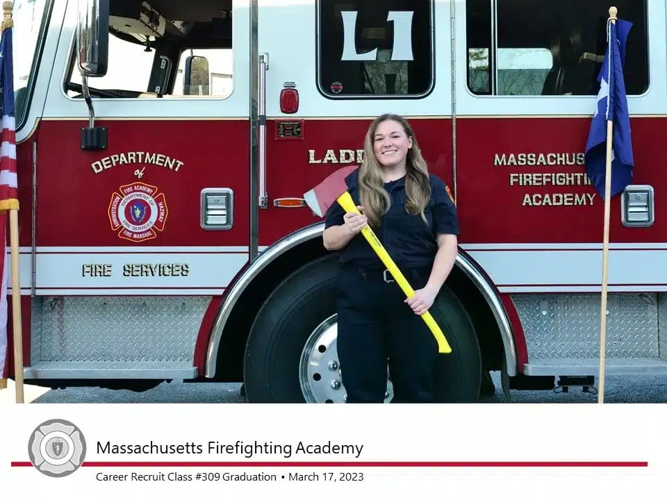 Firefighter Meadowcroft was born in Beverly and raised in Salem. A true New Englander, she attended Salem State University, earning her Bachelor degree in 2018 and Paramedic certification through Dean College in 2021.