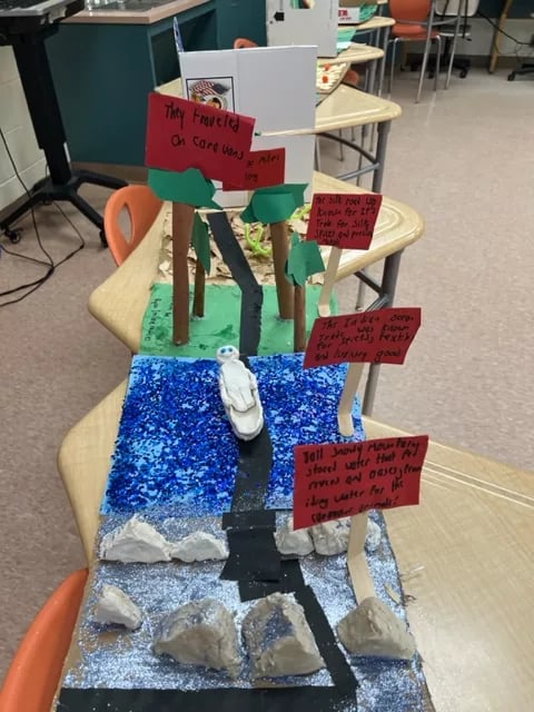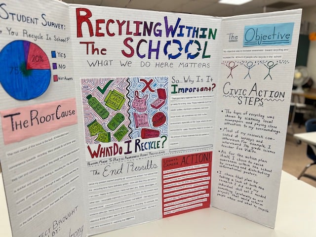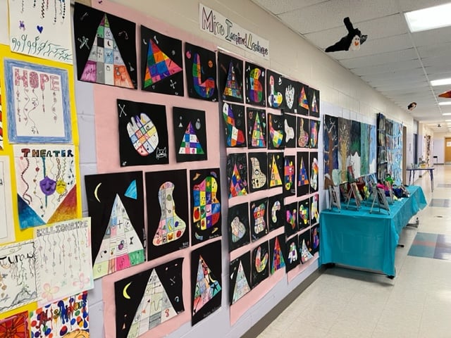 In addition, there were slideshows and displays of student work in classrooms and hallways, including school projects and poems. There was also 2D and 3D artwork on display throughout the building.