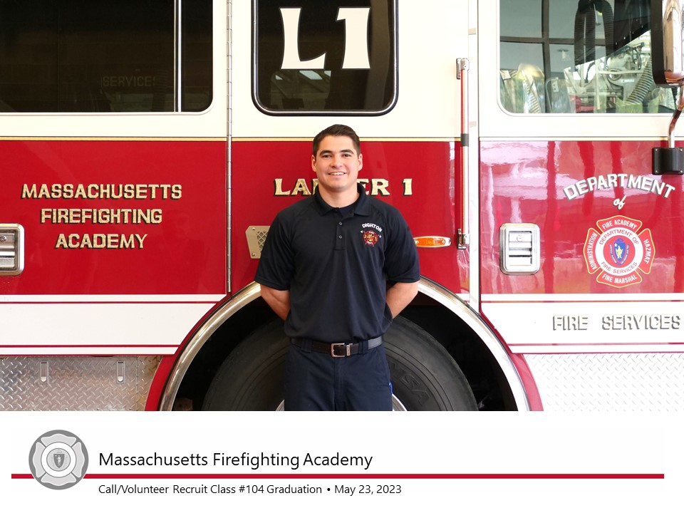 DIGHTON — Chief Christopher Maguy and the Dighton Fire Department would like to congratulate call firefighter Nicholas Grassie upon his graduation from the Massachusetts Firefighting Academy’s Call/Volunteer training program.
