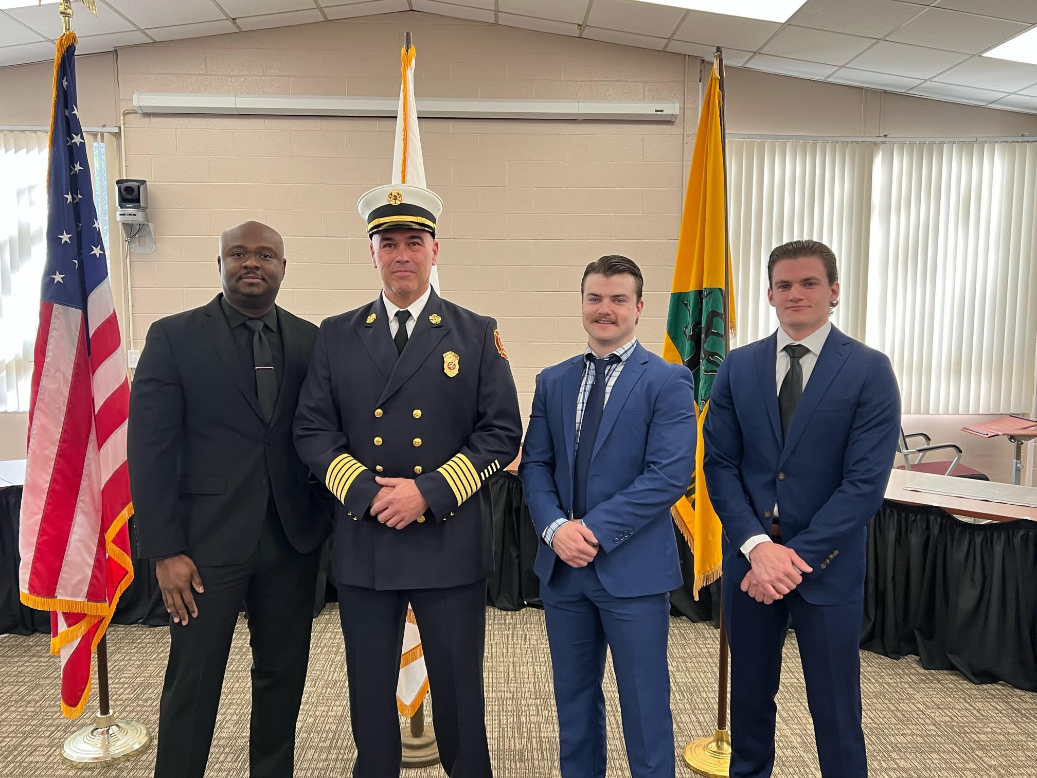 Firefighters Carisma Michel, Jason Tannian, and Liam Tannian were sworn in during a ceremony on Tuesday, May 30. Jason and Liam Tannian are the sons of Firefighter Michael Tannian.