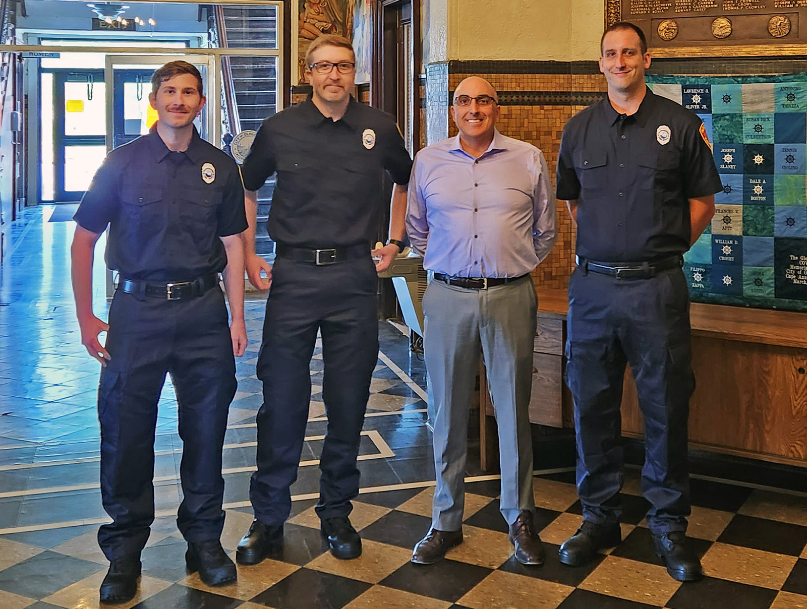 Probationary Firefighter/EMTs Andrew Hugel, Edward Mahoney, and Brandon Poole were sworn in Monday, June 12 at City Hall.
