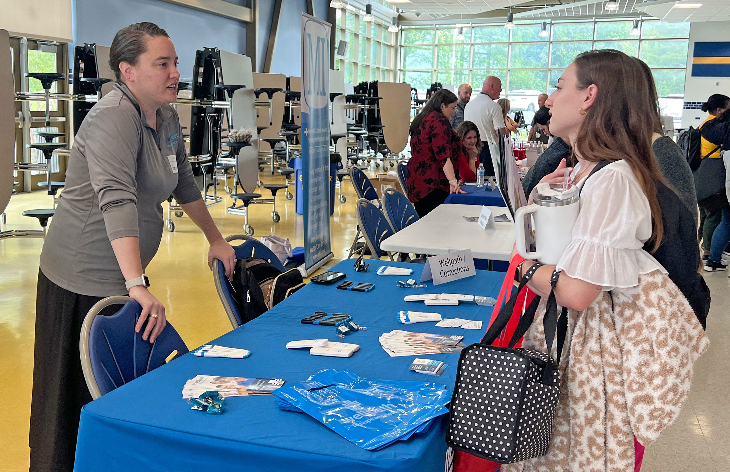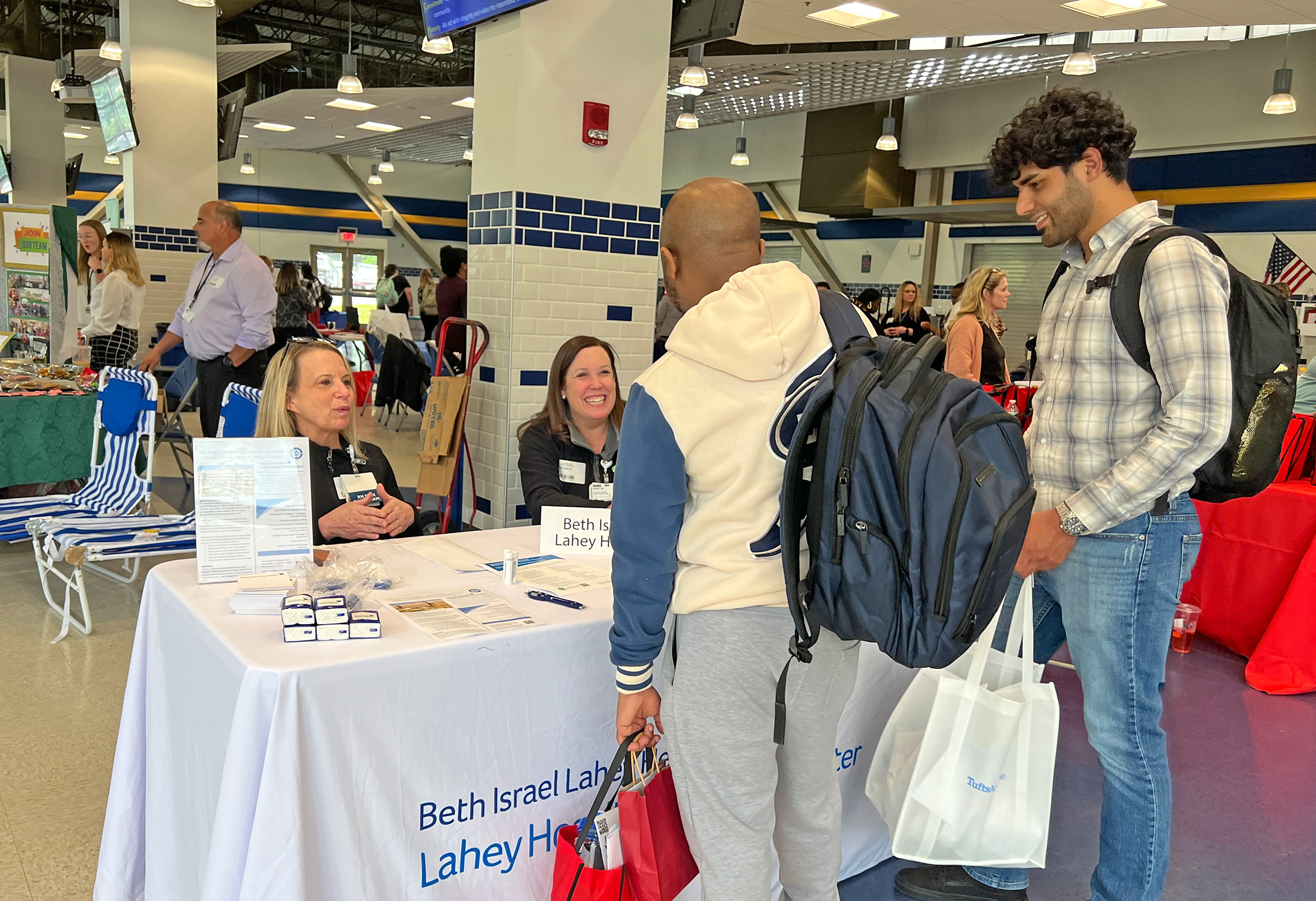 Vendors representing local hospitals, home care agencies, rehabilitation facilities, and hospice facilities, as well as the Massachusetts Executive Office of Health and Human Services met students and discussed employment opportunities.