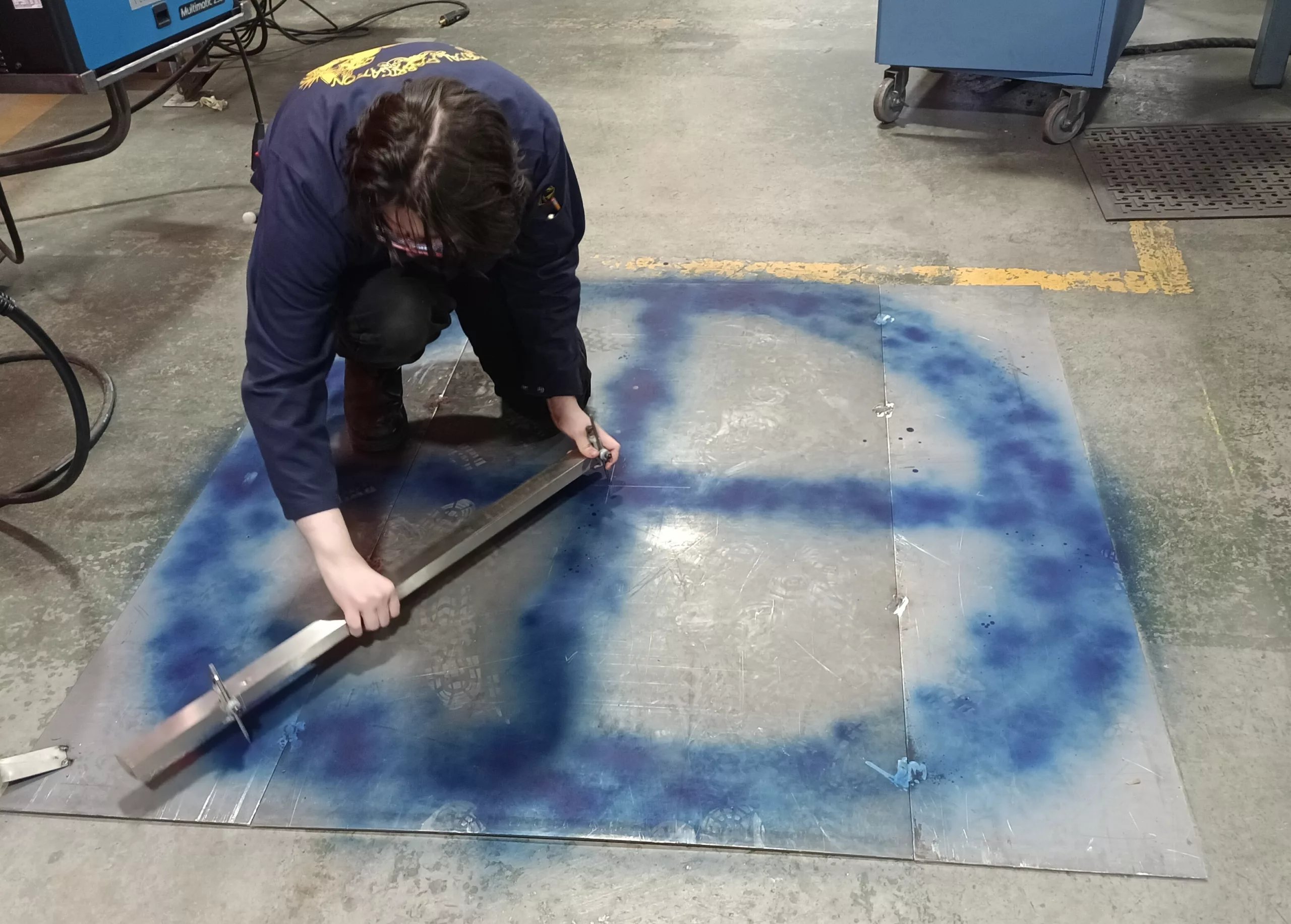 Work began during the week of April 3. Students created many sketches and paper models, and difficult layout problems were resolved with AutoCAD, a digital design software, and a computerized plasma cutting device. Students performed all of the work under Wittmier’s direction.