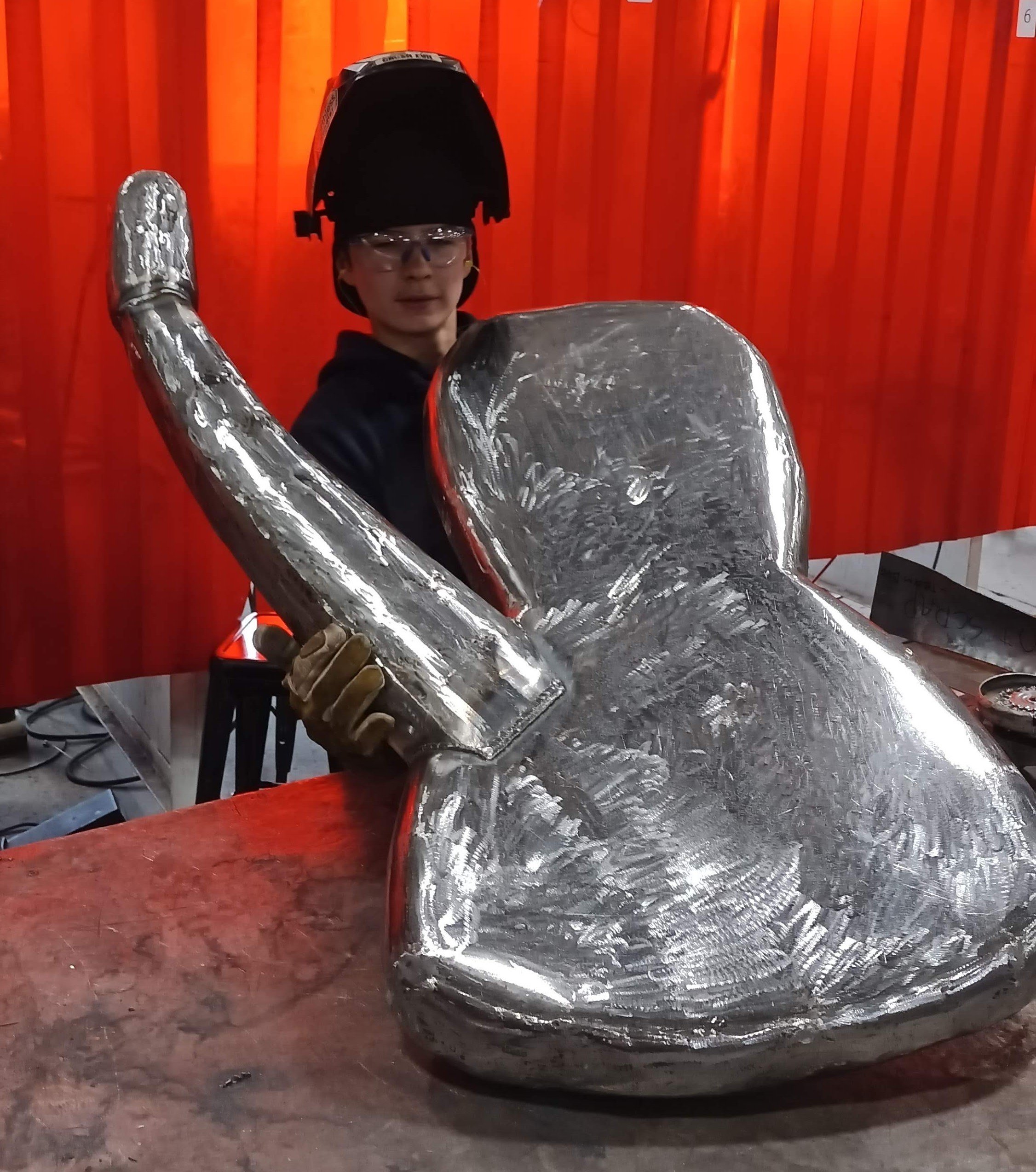 In November, Kenny Cyphers visited Assabet to talk about his ideas and requirements for the sculpture with students in the MF/W program. Students worked with Cyphers on the design throughout the fabrication process.