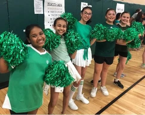During the game, approximately 100 students faced their teachers in both traditional and knockout-style basketball games while student cheerleaders, staff, and families cheered from the sidelines.